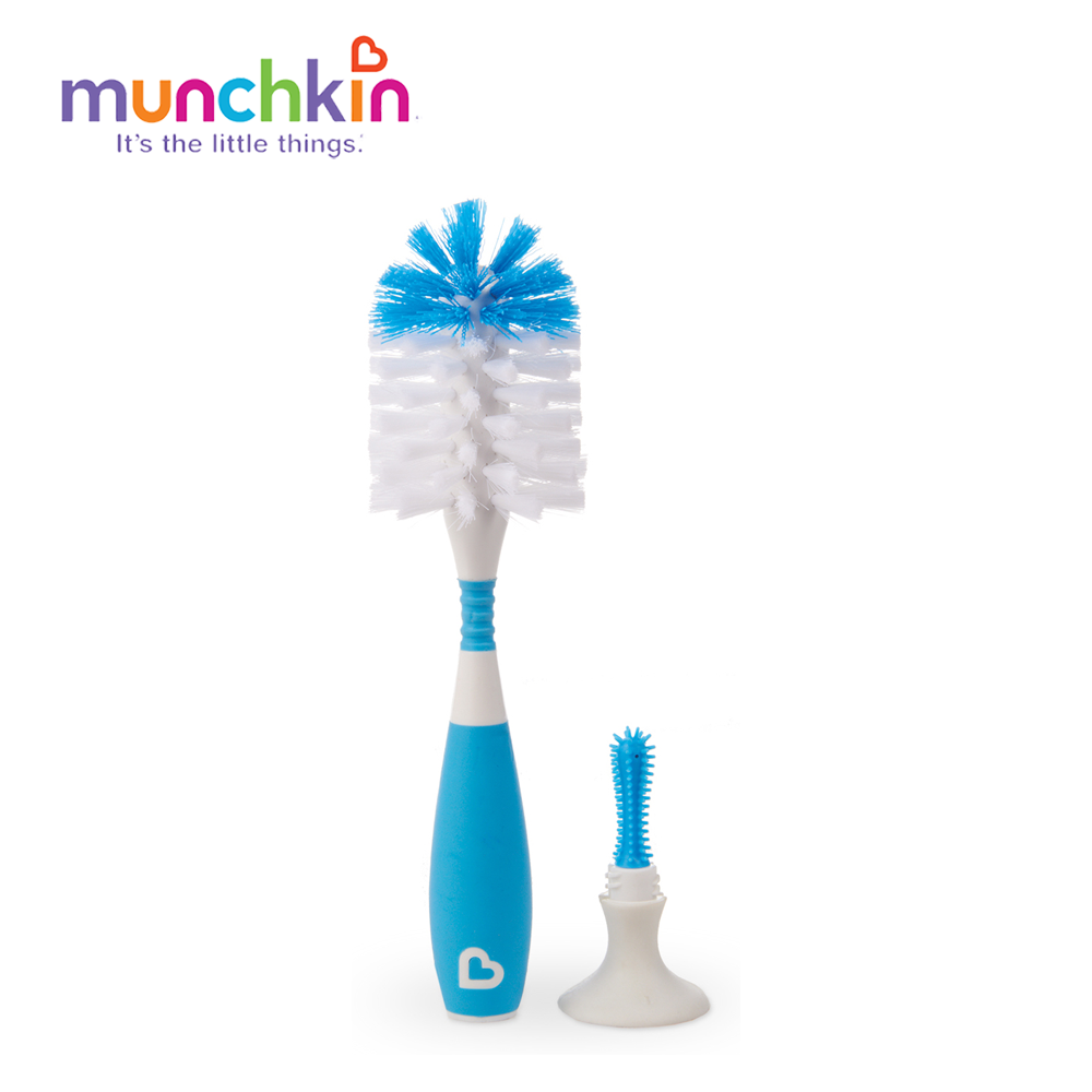 Bình sữa cần được vệ sinh kỹ càng sau mỗi lần sử dụng, vì nếu không được làm sạch các vi khuẩn trong bình sẽ tích tụ lại, gây hại đến hệ tiêu hoá & sức khoẻ của bé, cũng như làm giảm chất lượng sữa mỗi lần bé ti. Chổi cọ bình Deluxe Munchkin là sản phẩm 2 trong 1, vừa là chổi cọ bình, vừa là chổi cọ núm ti sẽ là lựa chọn hoàn hảo của mẹ để vệ sinh bình sữa cho bé.