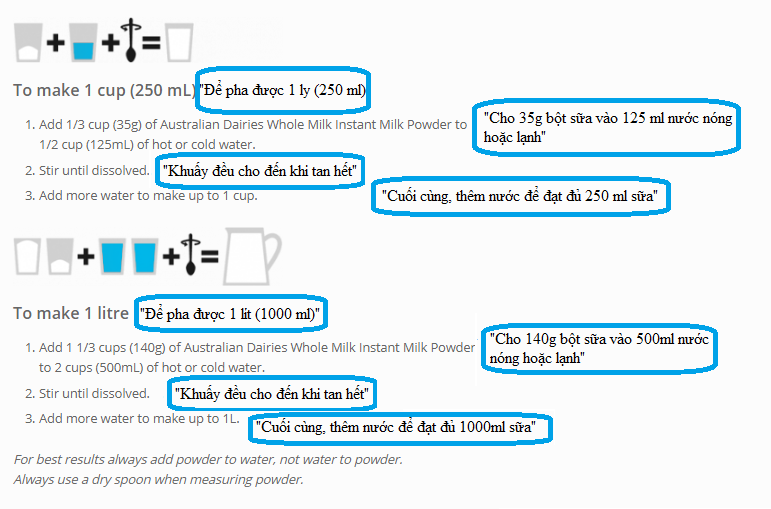 Sữa Australian Dairies 100% nguyên liệu sữa được sản xuất và đóng gọi tại úc.